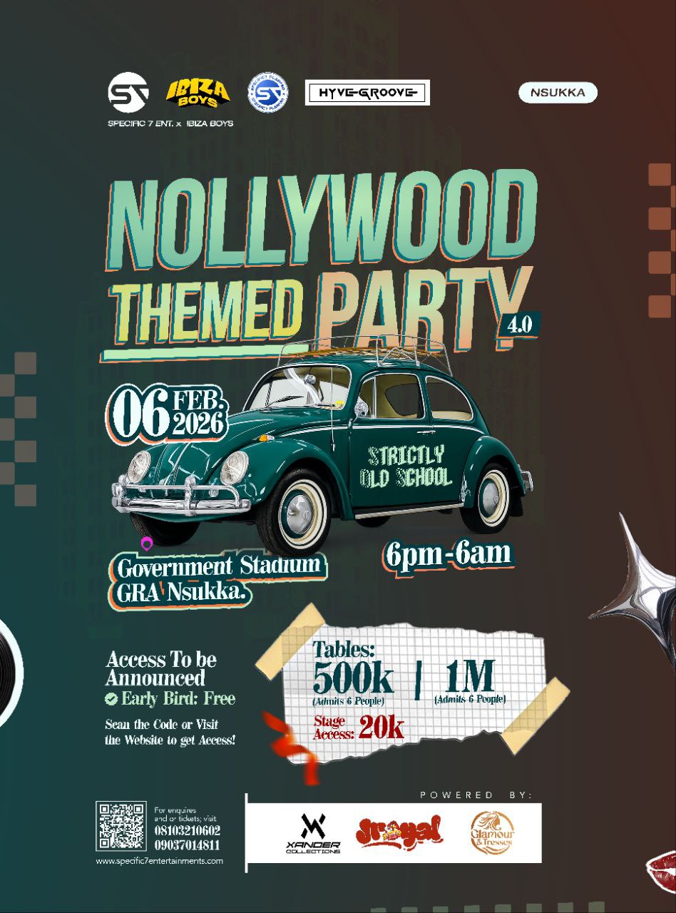 Step into classic Nollywood glam and old‑school vibes on 6 Feb 2026 at Government Stadium, GRA Nsukka (6pm–6am). Expect throwback hits, live DJs, stage performances and a vintage dress code — Strictly Old School.
